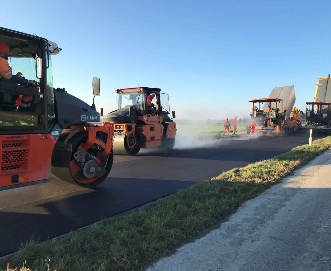 Unsere Expertise reicht von der Materialgewinnung über die Herstellung von Zuschlagsstoffen und Belägen bis hin zum Einbau des fertigen Strassenbelags. Damit decken wir die gesamte Wertschöpfungskette im Strassenbau ab.